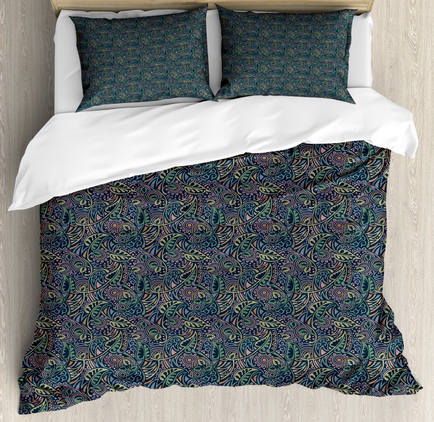 Botanical Duvet Cover Set King Size Vintage Muted Tone Leaves On Dark Background Decorative 3 Piece Bedding Set With 2 Pillow Shams Dark Petrol Blue Reseda Green And Purpleblue By Ambesonne Walmart Com