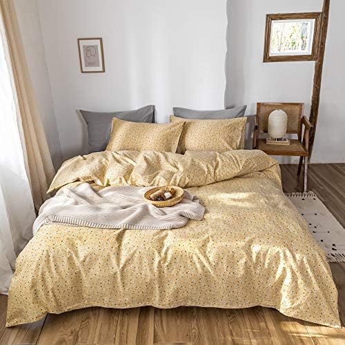Girls Yellow Duvet Cover Queen Cotton Floral White Bedding Set Queen Teens Flower Comforter Cover Queen For Kids Women Breathable Botanical Duvet Cover Full With Zipper Closure No Comforter Home Kitchen