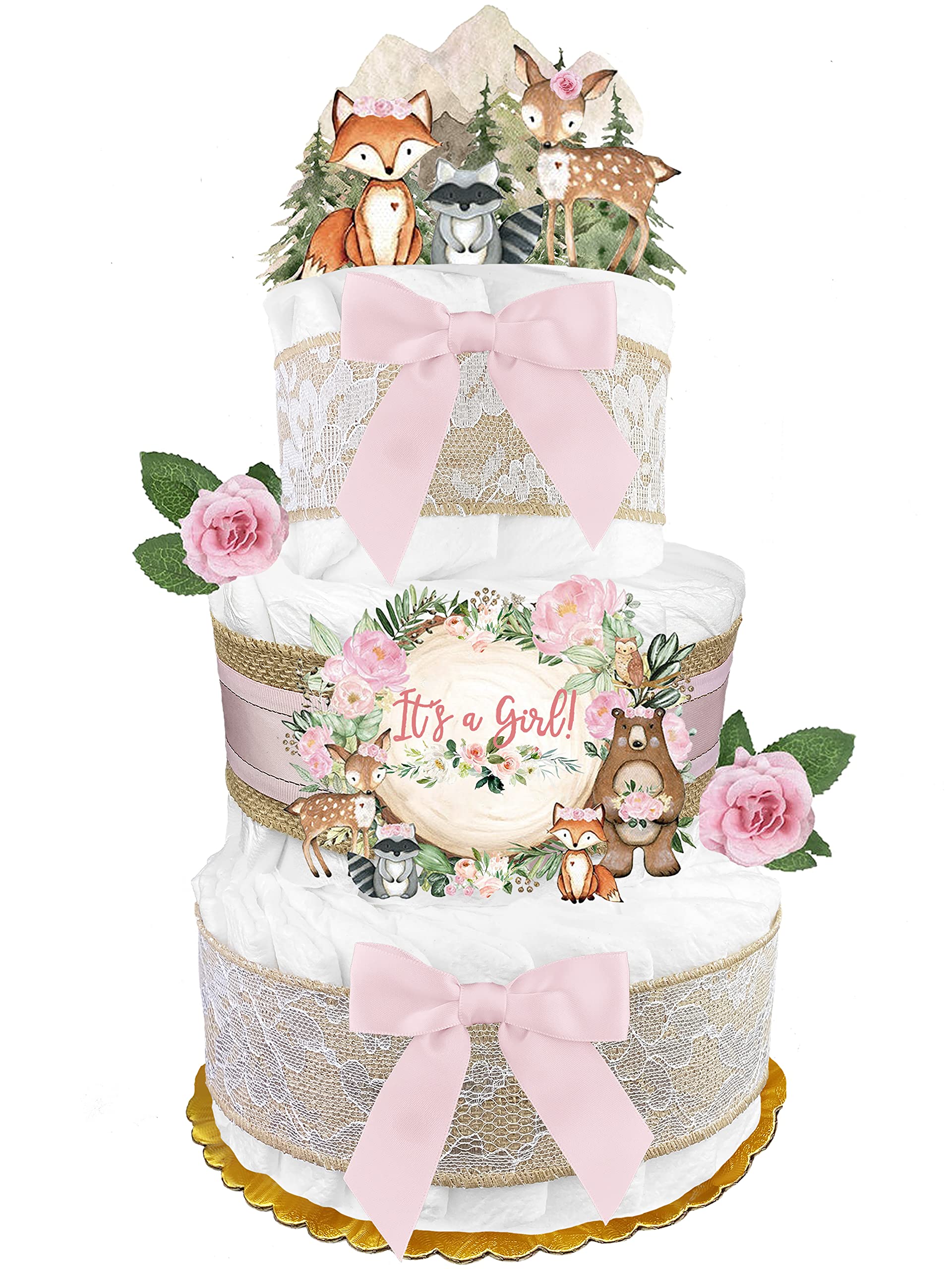 Amazon Com Woodland Creatures Diaper Cake Girl Baby Gift Burlap Pink And Sage Green Baby